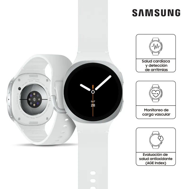 Super AMOLED 44 mm: 1,47 pulgadas, 480 x 480 píxeles 40 mm: 1,34 pulgadas, 438 x 438 píxeles Cristal de zafiro Brillo máximo: 3.000 nits |